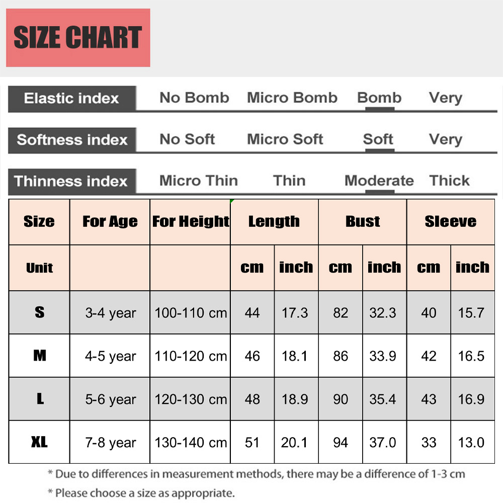 Please Choose Size according to Suggestion of the size chart , Size S is fit for 3-4 years , height 100-110 cm Size M is fit for 4-5 years , height 110-120 cm Size L is fit for 5-6 years , height 120-130 cm Size XL is fit for 7-8 years , height 130-140 cm